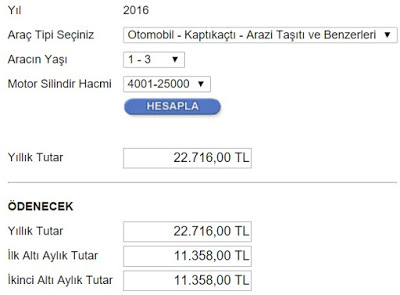 üzeri bir otomobili tercih ettiniz. Ödemeniz gereken 6 aylık MTV şöyle oluyor: