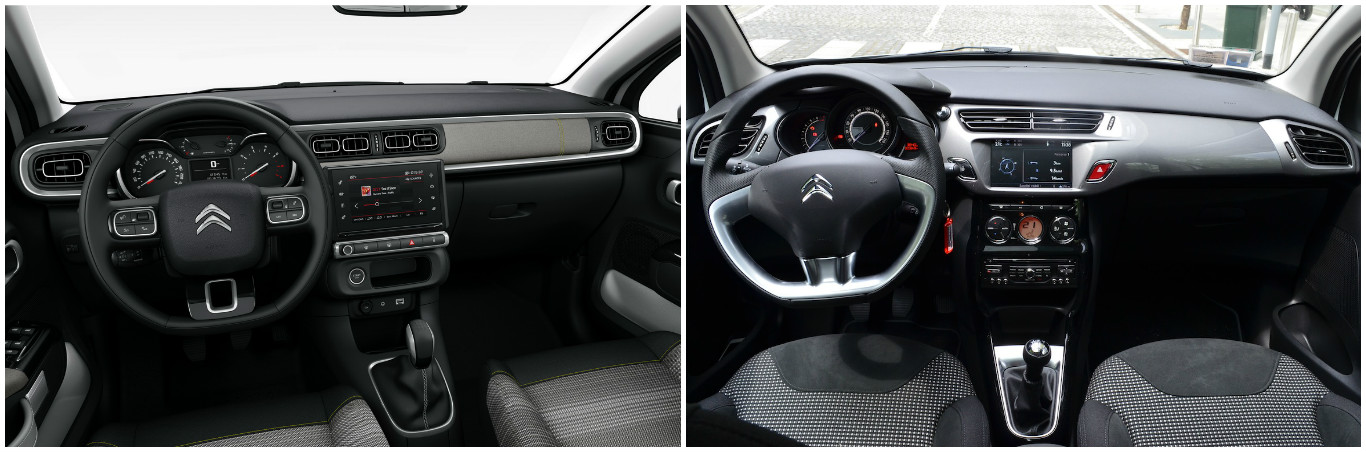 Aracın iç tasarımı da dış tasarıma benzer bir şekilde tamamen farklı. Yuvarlak hatlar yerini köşeli ve modern bir tasarıma bırakmış. Radikal bir tasarıma sahip C4 Cactus modeline benzeyen kokpitin ortasında yer alan dev bilgi-eğlence sistemi önceki modele göre çok daha dikkat çekici ve şık bir tasarıma sahip. Havalandırma üfleçleri ise aracın kapılarında yer alan siyah plastik korumaya benzer bir parçalı dikdörtgen tasarıma sahip. Havalandırma düğmeleri ise eskisine göre çok daha küçük ve bu sayede daha derli toplu bir görünüm elde edilmiş diyebiliriz. Bize göre yeni Citroen C3 gerek iç gerekse de dış tasarım olarak hedefi tam ortadan vurmuş. Bu hali ile bir önceki modele göre çok daha fazla beğenileceğini düşünüyoruz.
