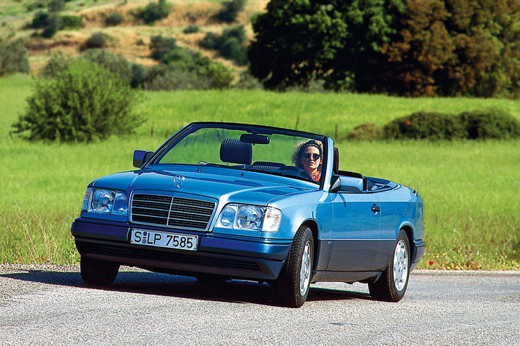 Mercedes W124 E Sınıfı Sedan modeli 1984 yılından itibaren 200, 230, 200E, 230E, 300E gibi motor odaklı uzantılarla üretildi. Daha sonra değişen trendlerle beraber 1993 yılından beri “E Class” yani “E Sınıfı” olarak adlandırılmaya başlandı. Motor eki de E harfinden sonra geldi. Diğer taraftan en son 1971 yılında 280SE Convertible adında üst sınıf bir Cabrio araç üreten Mercedes aradan 20 yıl geçtikten sonra 1991 yılında kasa henüz makyaj görmeden önce radikal bir karar ile W124 kasanın 4 kişilik üstü açılır bir modelini Frankfurt Otomobil Fuarı’nda tanıttı ve ardından da satışa sundu.