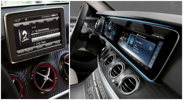 Diğer taraftan son zamanlarda elde edilen bazı gizli çekim fotoğrafları basit duran bu ekranın yavaş yavaş değişeceğini gösteriyor. Hatırlanacak olursa Mercedes, ilk olarak S Serisi ve sonradan da yeni E Serisi’nde oldukça büyük ve göstergelerle bir bütün içinde olan dijital panelini tanıtmıştı. Bu panelde bilgi eğlence sistemi ve göstergeler tamamen dijital olarak ince uzun tek bir ekran gibi görünüyor. Sadece S Serisi’nde arada iki ekranı ayıran parlak siyah renkli bir çıta ve üzerinde bir takım tuşlar bulunuyor. Bu arada E Serisi’nde standart olarak analog gösterge panelini sunulduğunu da belirtmeden geçmeyelim. (Üstte E Serisi, allta S Serisi)