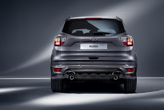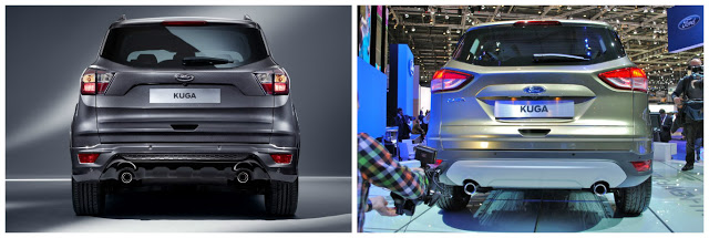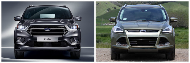 Uygulanan makyaj operasyonu aracın ön tasarımını tamamen değiştirerek markanın diğer modellerine benzetmiş. Daha önceki modelde bulunan sivri burun yerini küt bir burun tasarımına bırakmış. Ön tampon görünümünün de tamamen değişmesiyle makyajdan daha çok yeniden tasarlanmış bir model karşımıza çıkıyor. Farların ise hem şekli hem de iç renkleri değişmiş. 17, 18 ve 19 inch çapında yeni tasarım jantlar da bu yeni ve taze görünümü pekiştirecek detaylardan birisi olarak göze çarpıyor. Bu şık ve kuvvetli ön tasarımın Kuga modeline çok yakıştığını ve satışlarında etkisi olacağını düşünüyoruz.
