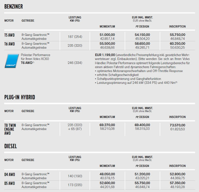 - Volvo XC60 D5 AWD 2.0lt turbo-dizel 235ps, 8 ileri oto. Momentum: 52.600Euro