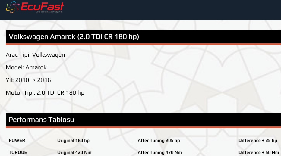 Remapping uygulaması sonrası değerler (Ecufast.com.tr sitesine göre)