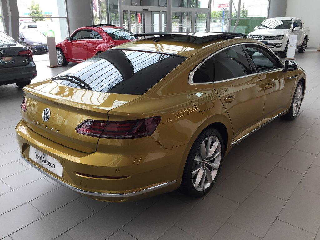Bizim galeride inceleme fırsatı bulduğumuz araçların her ikisinde de 2.0lt turbo-dizel 150ps gücünde motor vardı vardı ve ayrıca Elegance donanıma sahiptiler. Bir tanesinin dışı Atlantik mavisi ve koltukları da açık gri alcantara-siyah deri kombinasyonuna sahipken diğeri lansman rengi olan metalik Turmerik sarısı renkte ve gri-siyah çift renk deri koltuklu olarak yer alıyordu. Mavi olan geri görüş kamerası ve panoramik cam tavan ile 295.885TL liste fiyatına sahipti ve diğer seçenek de yaklaşık 315.000TL etikete sahipti. Kısacası her 2 şekilde de karşımızda en az 300.000TL değerinde araçlar duruyordu. VW satış yetkilileri ile yaptığımız görüşme sonunda ise Arteon için %2-%4 aralığında indirim yaptıklarını öğrendik.