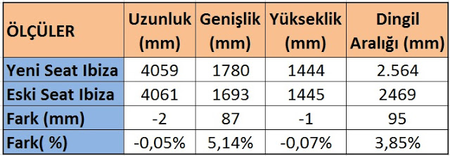 | Yeni-eski Seat Ibiza boyutlar |